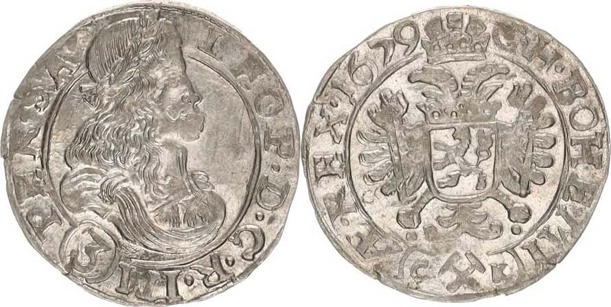 3 kr. 1679 CK, K.Hora-Krahe MKČ 1454 "RR" 1,558 g "sbírkový stav !"