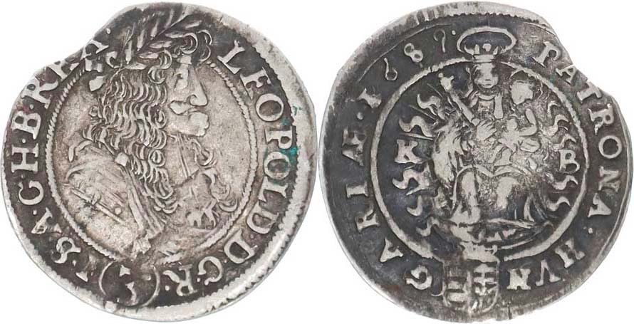 3 kr. 1689 KB MKČ 1466 var.: HVN - GARIAE . 1689 . _kraj. stř., patina