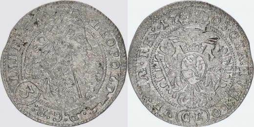 3 kr. 1703 GE, Praha-Egerer var.: IMPER:S:A. perlovec až k nominálu_vada stř. v Av (nálitek)