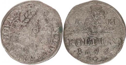 Poltura 1696 P H Hus. 1482 var. pod datací kosočtverec mez i tečkamai opis: G. H. B. REX. 0,91 g