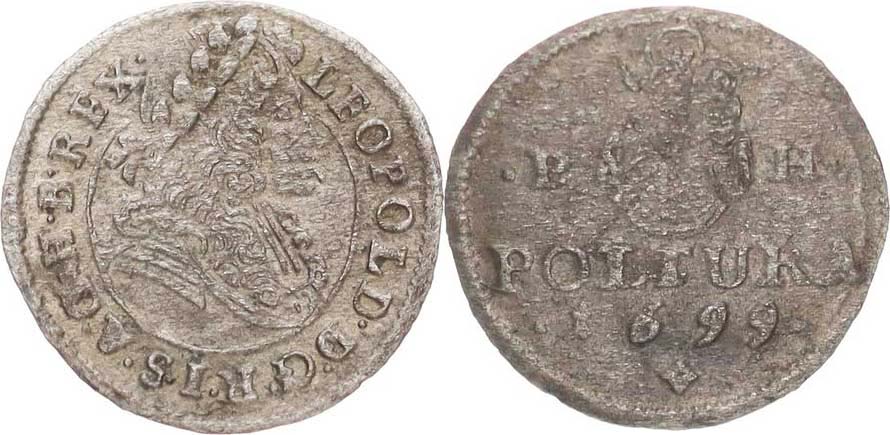 Poltura 1699 P H jako Husz. 1483, hladký kruh kolem poprsí _mělká ražba Rv.