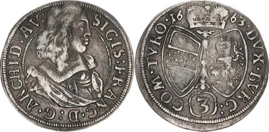 3 kr. 1663, Tyroly, Hall var.: ARCHID: AV:_tém.
