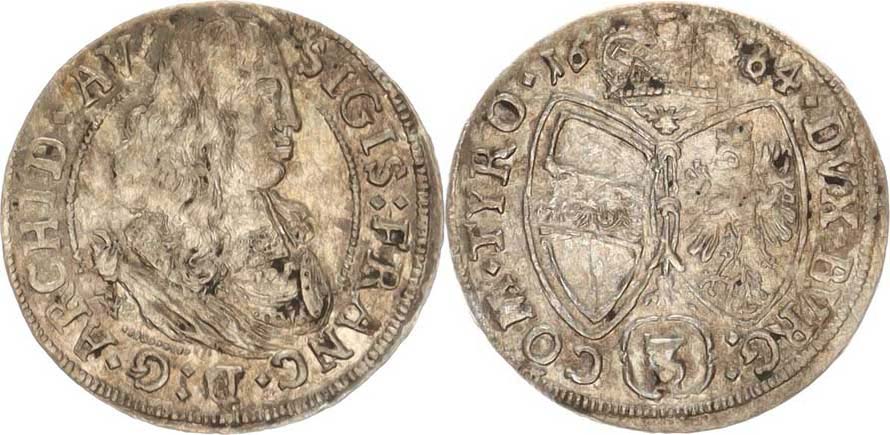 3 kr. 1664, Tyroly, Hall 1,209 g