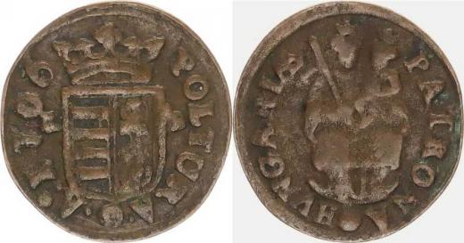 Poltura 1706 KB Husz. 1549 var.: písmeno V v HVNGARIA E 1,996 g